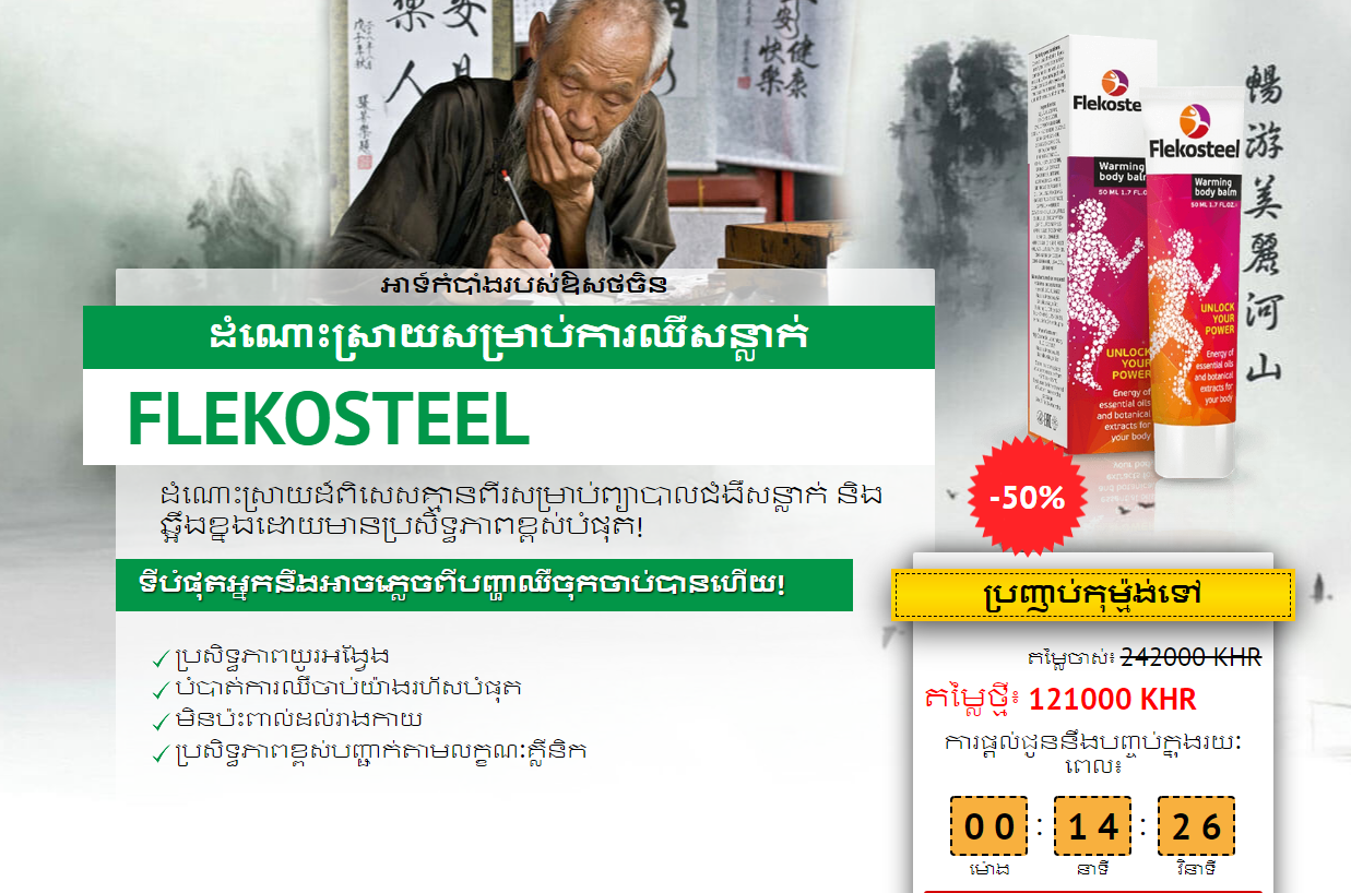 ក្រែម បំបាត់ការឈឺចាប់រួមគ្នា Flekosteel ត្រូវបាន បម្រុងទុកសម្រាប់ការព្យាបាលនៃជំងឺសន្លាក់ក៏ដូចជាដើម្បីលុបបំបាត់រាល់ការសម្ដែងមិនល្អនិងឈឺចាប់របស់ពួកគេដូចជាការកំណត់នៃការចល័តការឈឺចាប់ហើមនិងអ្នកដទៃ។ ក្រែមមានលក្ខណៈធម្មជាតិវាមានគ្រឿងផ្សំធម្មជាតិផ្តាច់មុខ។ ហើយប្រសិទ្ធភាពត្រូវបានបង្ហាញដោយ ការពិនិត្យ វិជ្ជមានជាច្រើន ទាំងវេជ្ជបណ្ឌិតនិងមនុស្សសាមញ្ញ ដែលបានប្រើឧបករណ៍នេះ។