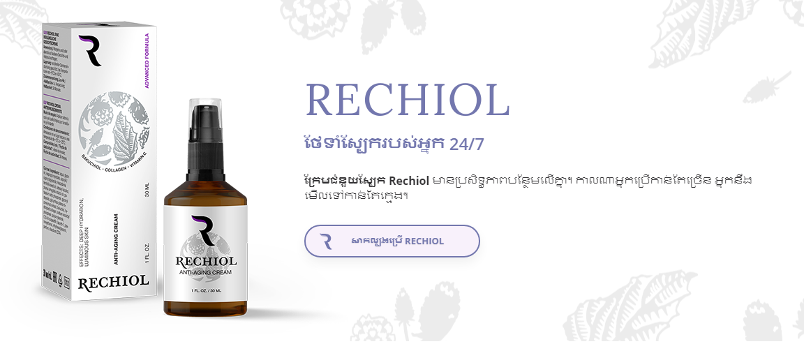 ការស្ទាបស្ទង់មតិអំពីផលិតផលកែសម្ផស្សថ្មីសម្រាប់ធ្វើឲ្យស្បែកមុខក្មេងជាងវ័យ Rechiol។, Rechiol ពី Hendel’s Garden គឺជាក្រែមដ៏ទំនើបមួយសម្រាប់ធ្វើឲ្យស្បែកក្មេងជាងវ័យ។ ផលិតផលកែ សម្ផស្សនេះមិនមានផ្ទុកអ័រម៉ូននោះឡើយ ហើយវាមានតែសមាសធាតុពីធម្មជាតិដោយមានមូលដ្ឋានលើផ្លែហ្គូជីប៊ែរី ដ៏មានសារៈប្រយោជន៍និងមានកេរ្តិ៍ឈ្មោះដ៏ល្បីល្បាញ។ បច្ចេកវិទ្យាទំនើបដែលត្រូវបានប្រើដោយក្រុមហ៊ុន កែសម្ផស្ស Hendel’s Garden អនុញ្ញាតឲ្យក្រែមដែលធ្វើឲ្យស្បែកក្មេងជាងវ័យទទួលបាននូវភាពយឺតរបស់ស្បែក មកវិញក្នុងរយៈពេលដ៏ខ្លីត្រឹម 10 ថ្ងៃប៉ុណ្ណោះ។ Rechiol បានឆ្លងកាត់ការធ្វើតេស្តគ្លីនិក និងការធ្វើតេស្ត ពីរោគសើរស្បែក បានយ៉ាងជោគជ័យ។ ផលិតផលនេះមានការបញ្ជាក់វិញ្ញាបនបត្រត្រឹមត្រូវ។ យើងខ្ញុំសូមជម្រាប ជូននូវព័ត៌មានលម្អិតបន្ថែមសម្រាប់អ្នកដែលមិនទាន់ដឹងពីផលិតផលកម្ចាត់ស្នាមជ្រីវជ្រួញដ៏អស្ចារ្យនេះ។