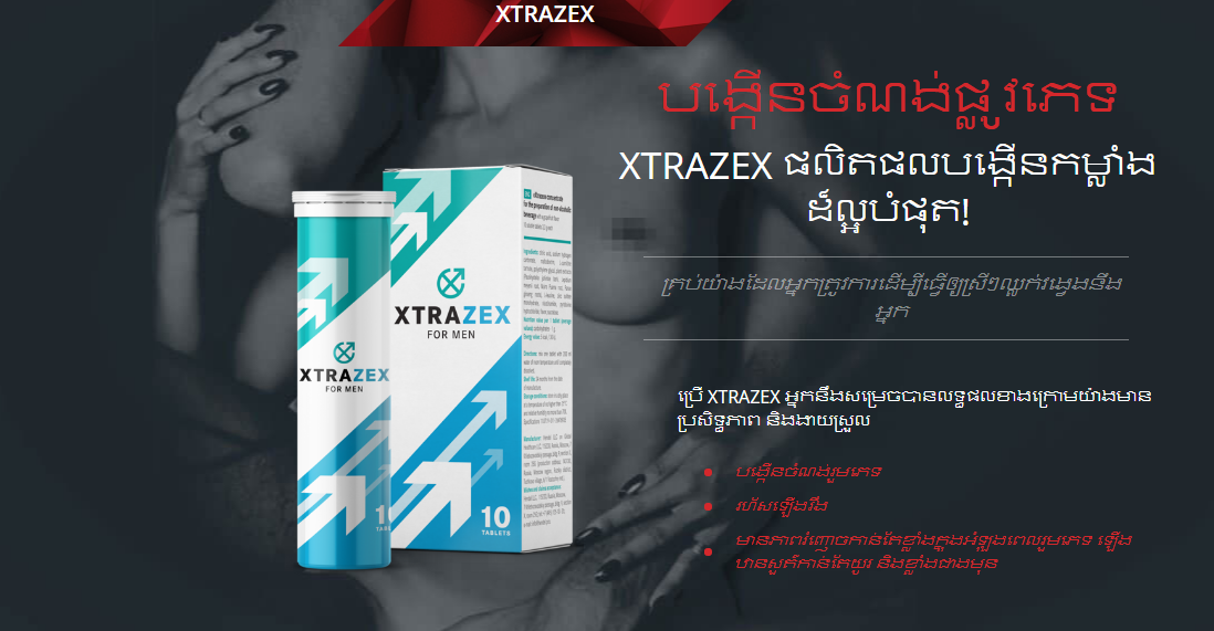 ថ្នាំជំនួយXTRAZEXគ្រឿងផ្សំសម្ងាត់ដែលជំនួយសុខភាព និងចំណង់ផ្លូវភេទបានគ្រប់វ័យបានផលគួរឲ្យកត់សម្គាល់ក្នុងពេល 3-5 ថ្ងៃ!